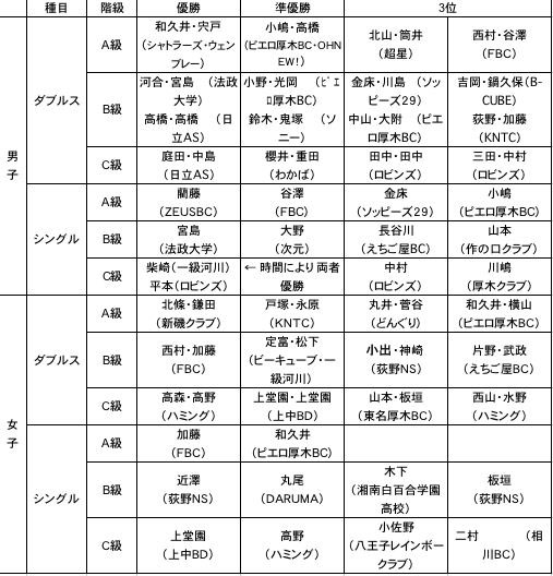 ■厚木市バドミントン協会会長杯結果