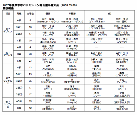 ■2007年度厚木市バドミントン総合選手権大会結果