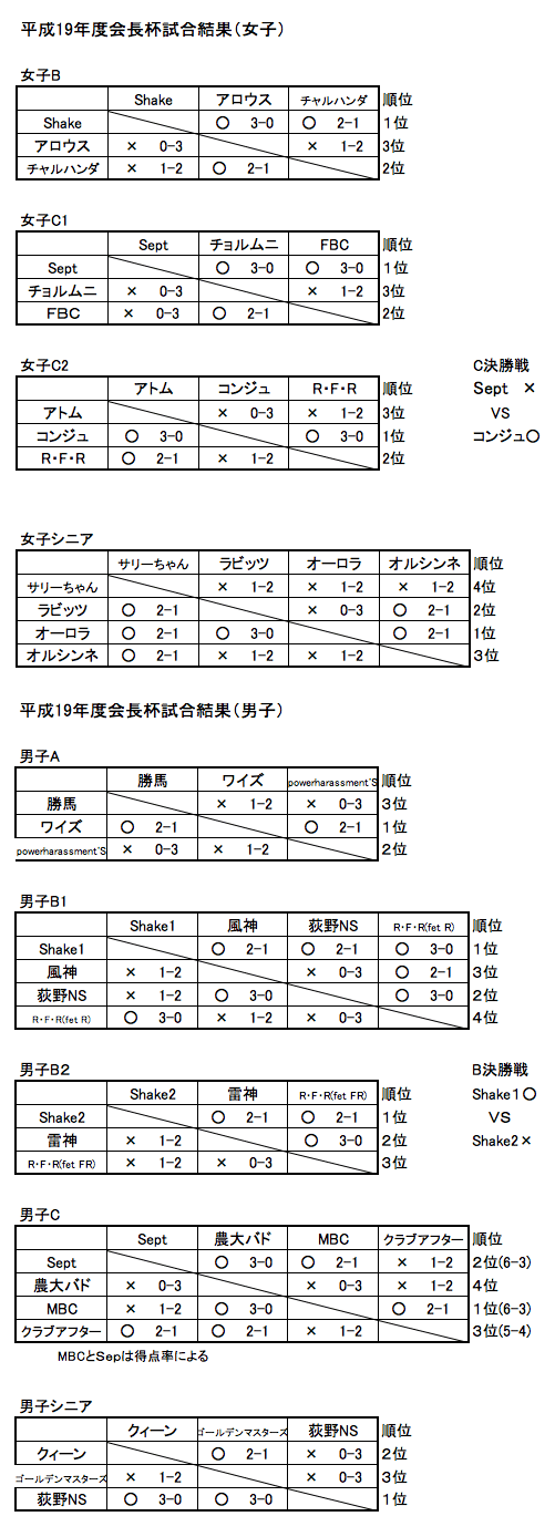 ■平成19年度会長杯結果