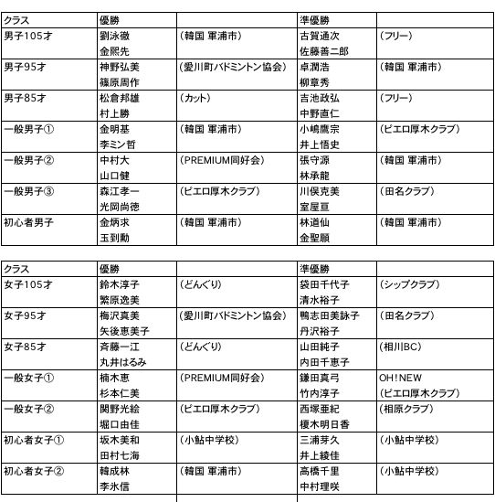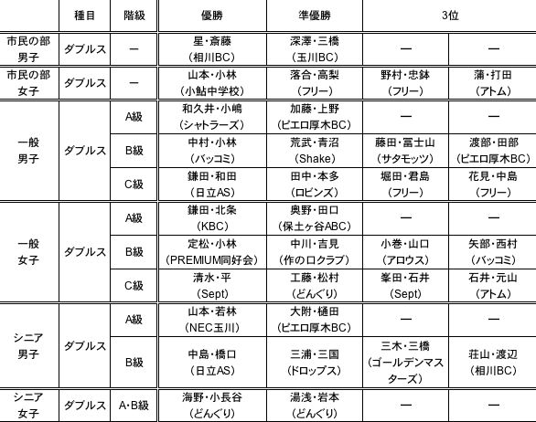 ■2007年厚木市バドミントン市民選手権大会結果